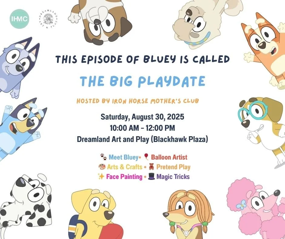 Get ready for a morning of fun at Dreamland Art & Play in Blackhawk Plaza! Meet Bluey and Bingo, enjoy face painting, games, balloon twisting, a magician, and so much more.